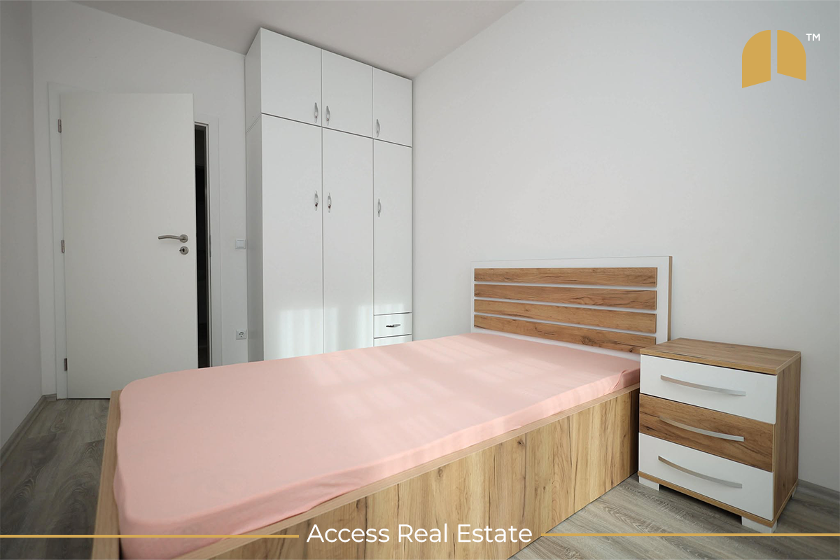 Banesa me sipërfaqe prej 100m² ndodhet në Lagjen e Spitalit, afër shkollës "Pavarësia", Rr. “Ukshin Kovaçica”. Është e kompletuar, ka kushte të mira për banim, e mobiluar në tërësi dhe ndodhet në katin e 4-të. Banesa moderne dhe elegante është e lokalizuar në një lagje mjaftë të përshtatshme dhe ka afër çdo shërbim që i nevojitet klientëve. Objekti banesor ku ndodhet banesa posedon ashensor funksional dhe sistemin e ngrohjes e ka me energji elektrike.