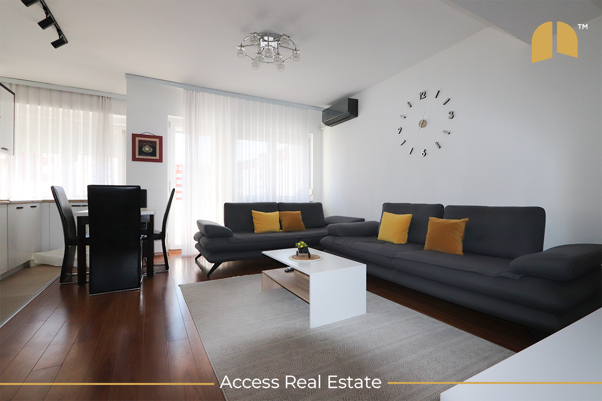 Banesa gjendet në Rrugën C, afër kafes "Positive Bar". Ka sipërfaqe prej 83m² kurse ndodhet në katin e 4-të. E mobiluar në tërësi, kjo pronë posedon kushte shumë të mira banimi. Objekti banesor ku ndodhet banesa posedon ashensor funksional dhe sistemin e ngrohjes e ka kondicioner. Ndodhet në një lokacion të qetë dhe të përshtatshëm për banim. Kjo pronë posedon edhe garazh që përfshihet në çmim.