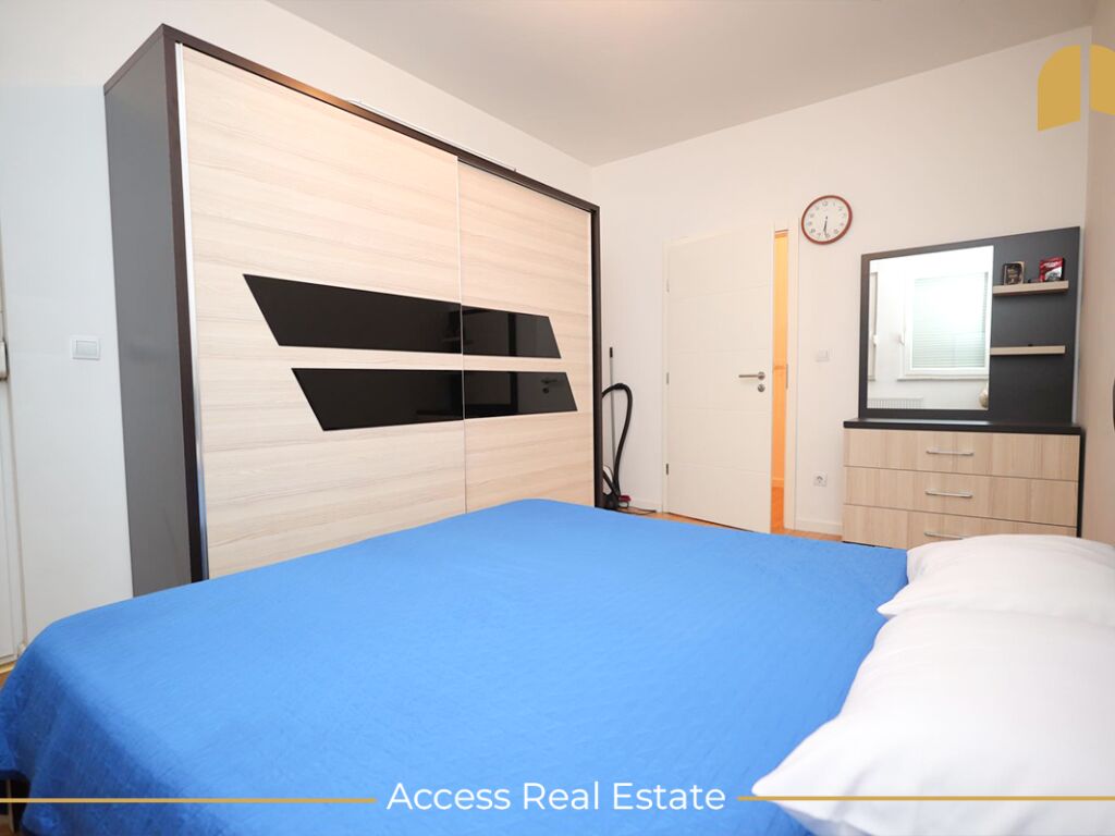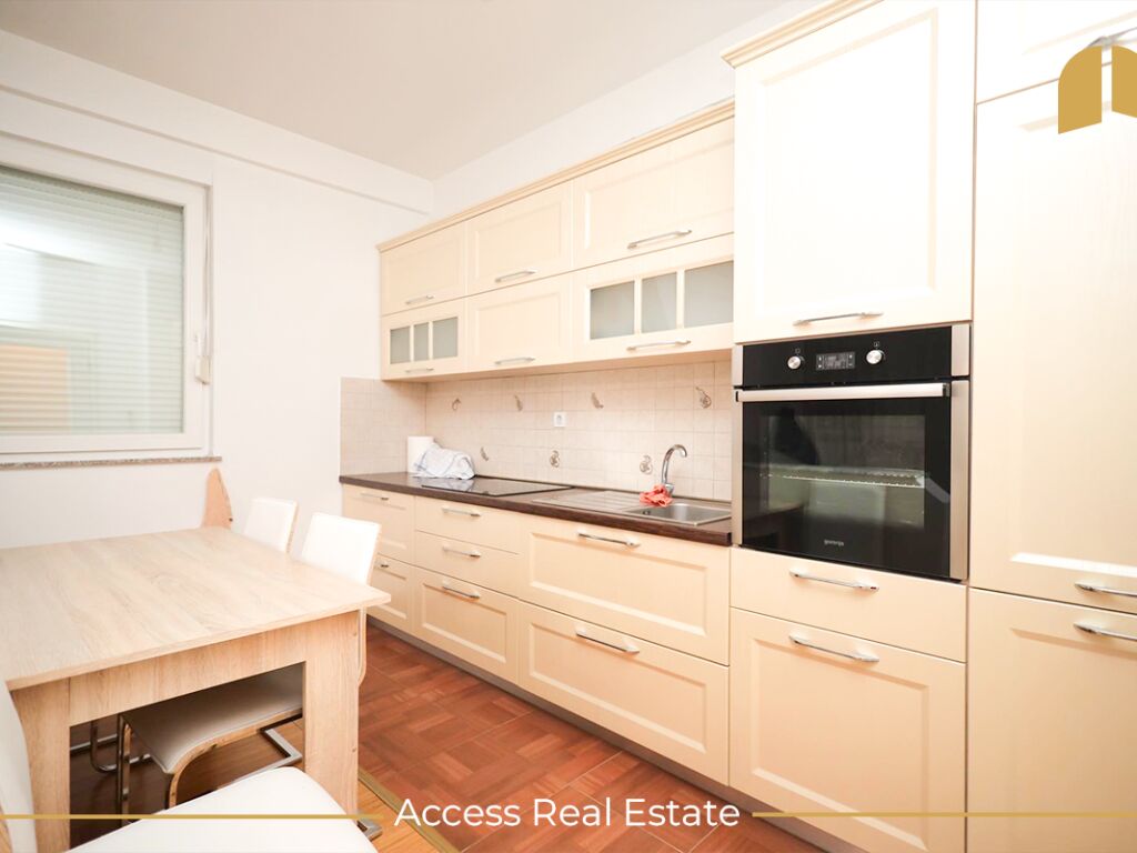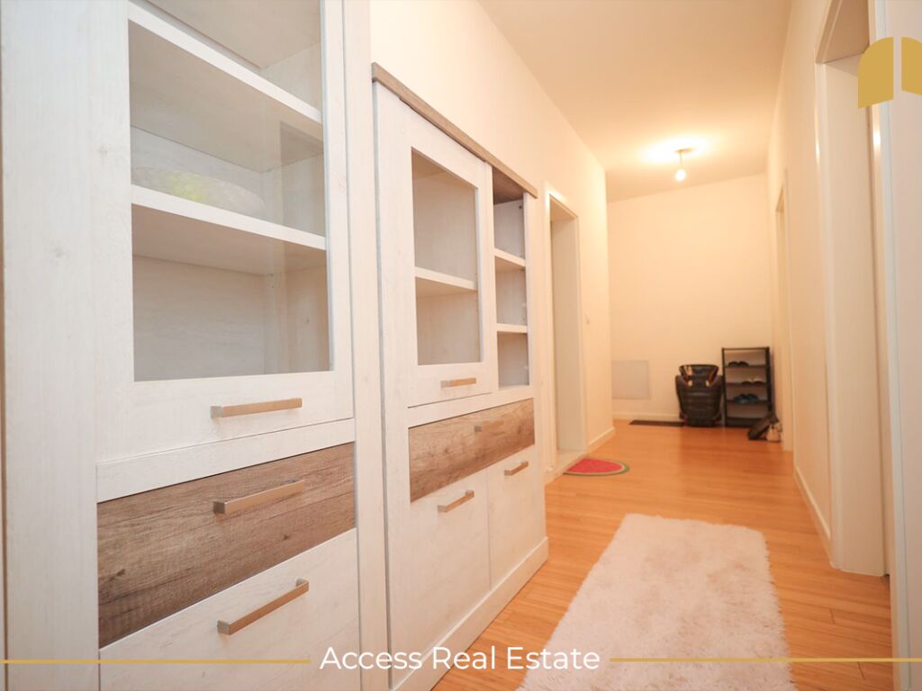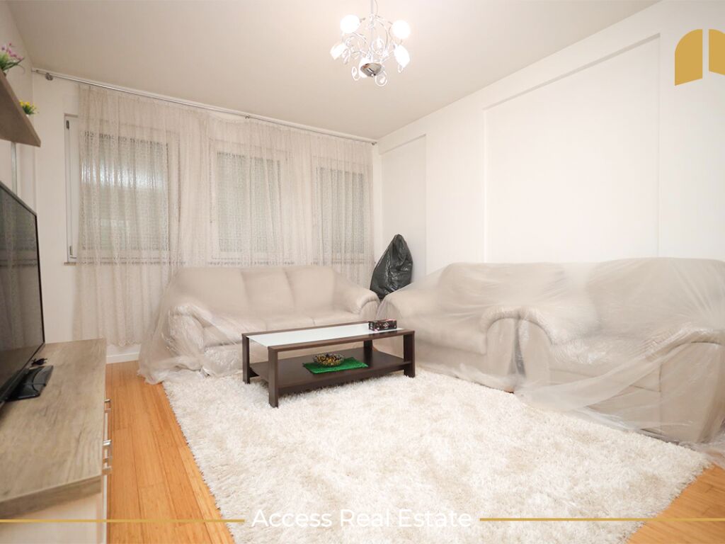 Avantazh i kësaj banese është lokacioni, pasi gjendet në një zonë tejet të zhvilluar dhe afër ka: markete, furra, restorante, barnatore etj.