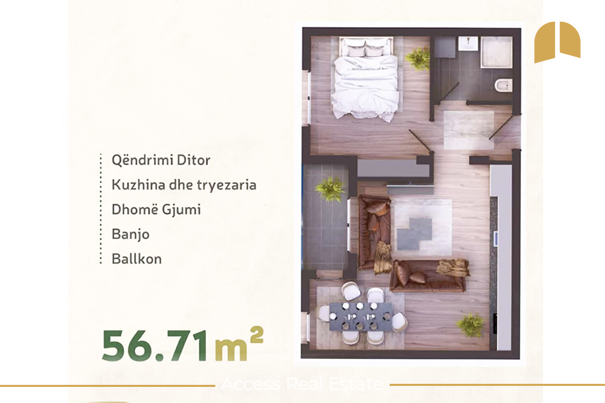 Banesë në SHITJE – 1 dhomë gjumi – Arbëri - Access Ks