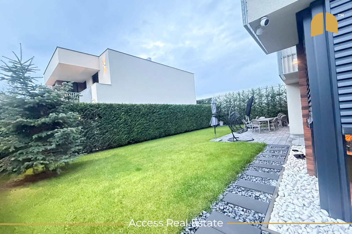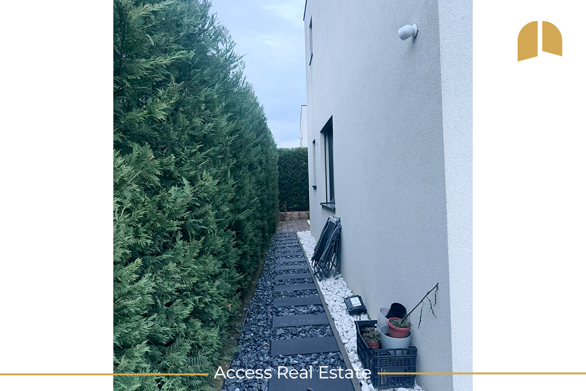 Ambientet e jashtme janë të rregulluara me oborr të gjelbëruar, sistem automatik të ujitjes, pisha dekorative Lejland për privatësi maksimale dhe bunar funksional (10m). Orientimi lindje–jug–perëndim siguron ndriçim optimal gjatë gjithë ditës. Shtëpia është plotësisht e licencuar nga ZRRE, KEDS dhe KESCO (back to grid) dhe e pajisur me sistem solar Growatt me kapacitet 12.5 kWh dhe bateri 5 kWh. Gjithashtu, posedon mbushës për veturë elektrike në oborr, duke mundësuar vetë-mjaftueshmëri energjetike dhe kursim të ndjeshëm të energjisë.