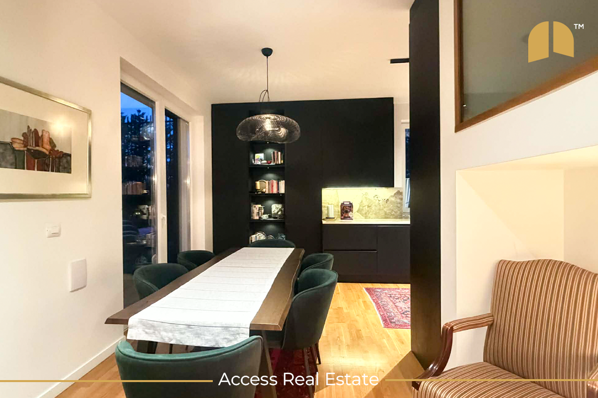 Shtëpia është e ndërtuar me standard të lartë, me izolim cilësor termik dhe akustik, ndriçim të bollshëm natyral dhe punime premium në çdo detaj. Ngrohja është nën dysheme në të gjitha hapësirat, e mbështetur nga pompë termike Daikin Altherma, si dhe bojler qendror 260L për ujë sanitar, duke garantuar komoditet dhe kosto të ulëta operative.