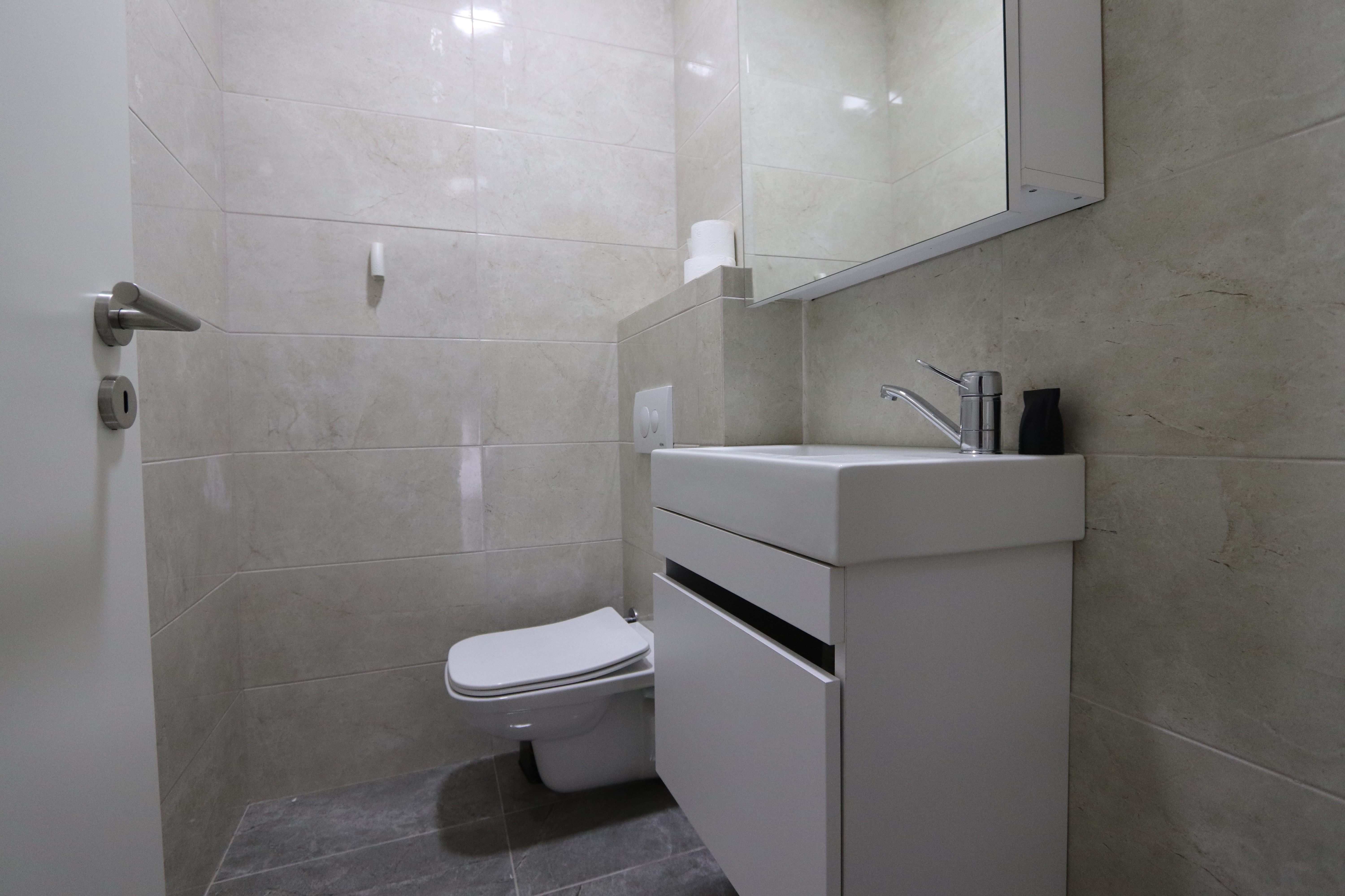Banesa gjendet në Veternik, afër qendrës tregtare "Albi Mall". Ka një sipërfaqe të shfrytëzueshme prej 90m² ndërsa ndodhet në katin e 4-të (me ashensor).